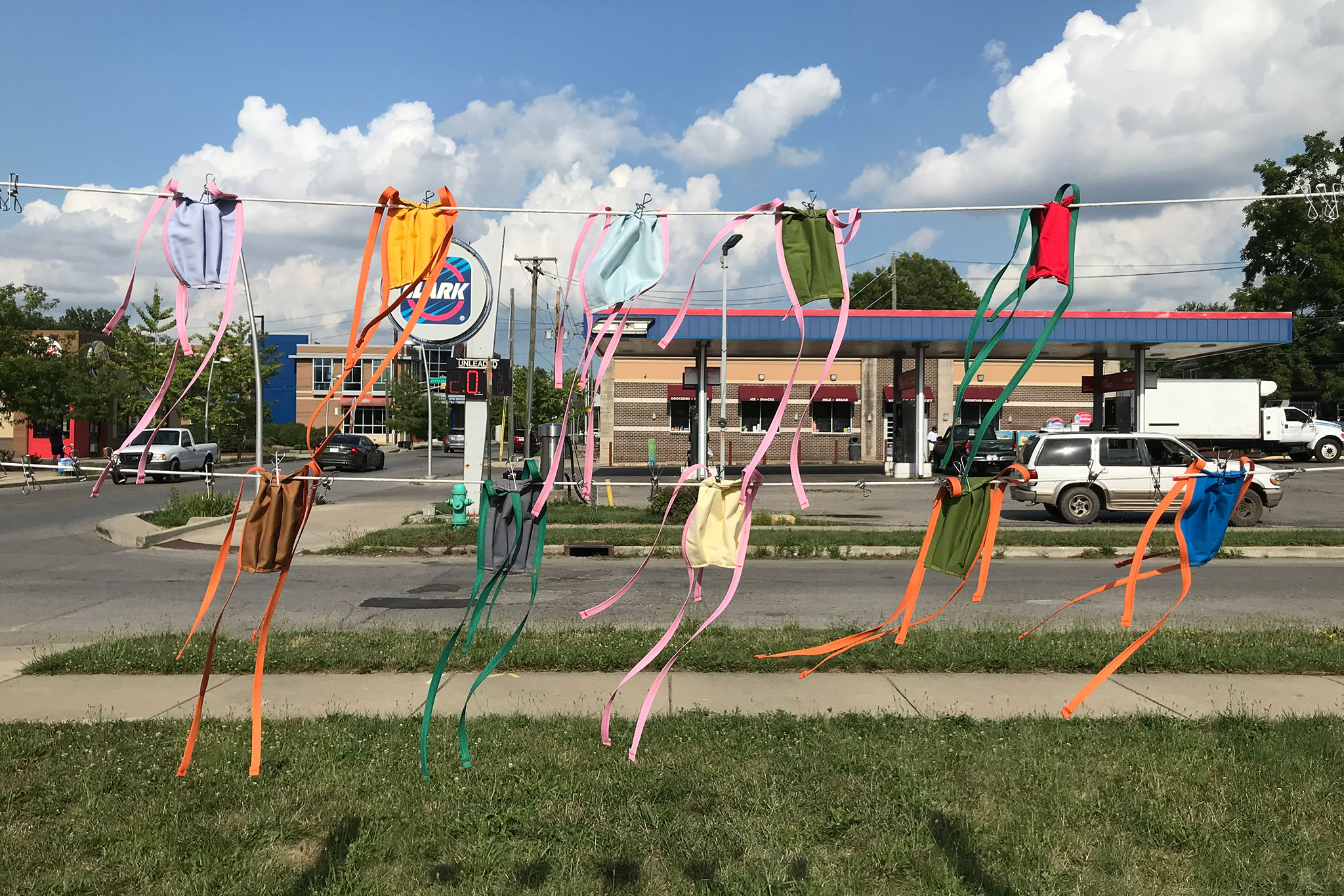 A few weeks ago, on 10th Street and Hamilton Avenue, Herron alum Philip Campbell (B.F.A. General Fine Arts '89) built a simple clothesline that gives residents of the Near Eastside free access to face masks in the midst of the COVID-19 pandemic.